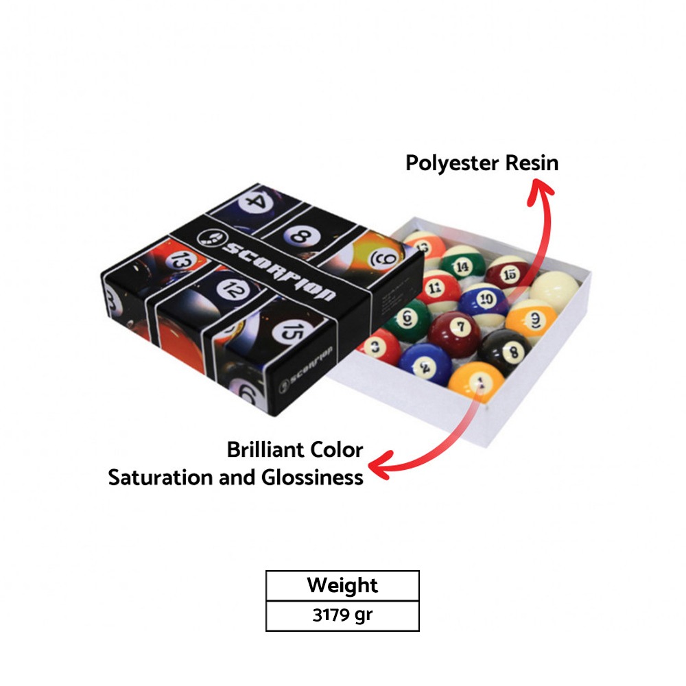 Rp 4.000BILLIARD BALL SCORPION 2 1/4 +CUE 2 1/4